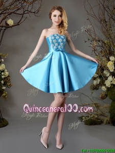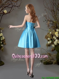 Modest Sleeveless Satin Mini Length Lace Up Court Dresses for Sweet 16 inBaby Blue forSpring and Summer and Fall withAppliques and Bowknot