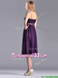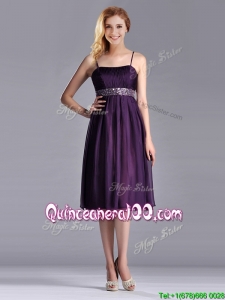 Modest Spaghetti Straps Beaded Chiffon Short Dama Dress in Purple