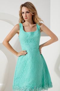 Modest urquoise Pricess Square Lace Dama Dresses For QuinceaneraModest urquoise Pricess Square Lace Dama Dresses For Quinceanera