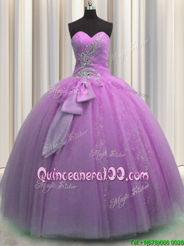 Most Popular Lilac Sweet 16 Dresses Military Ball and Sweet 16 and Quinceanera and For withBeading and Sequins and Bowknot Sweetheart Sleeveless Lace Up