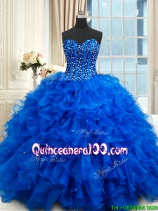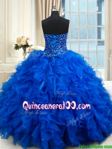 Most Popular Visible Boning Royal Blue Quinceanera Dress with Ruffles and Beading