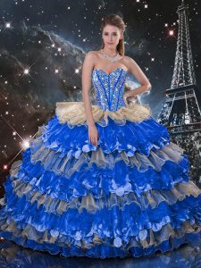 Multi-color Lace Up Quinceanera Gowns Beading and Ruffles and Ruffled Layers Sleeveless Floor Length
