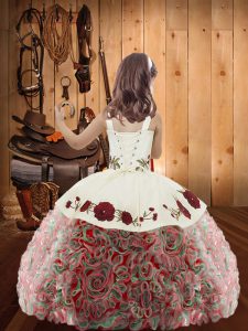 Multi-color Straps Lace Up Embroidery and Ruffles Little Girl Pageant Dress Sleeveless