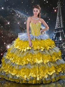 Multi-color Vestidos de Quinceanera Military Ball and Sweet 16 and Quinceanera with Beading and Ruffled Layers Sweetheart Sleeveless Lace Up