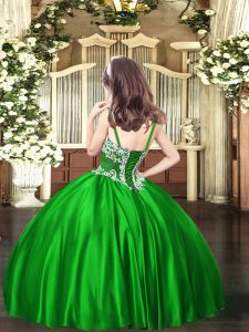 New Arrival Green Sleeveless Floor Length Appliques Lace Up Kids Pageant Dress