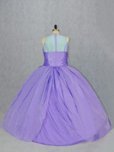 New Arrival Lavender Ball Gowns Scoop Sleeveless Taffeta Floor Length Zipper Embroidery Quinceanera Dresses