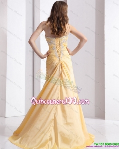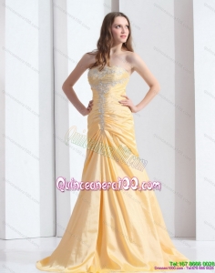 New Style Gold Dama Dresses with Ruching and Beading