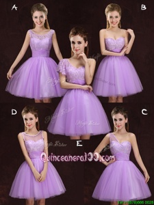 New Style Lilac A-line Tulle Scoop Sleeveless Lace and Ruching Mini Length Lace Up Quinceanera Court of Honor Dress
