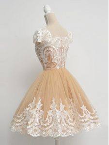 New Style Peach Court Dresses for Sweet 16 Prom and Party and Wedding Party with Lace Square Cap Sleeves Zipper