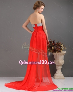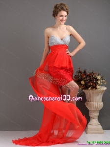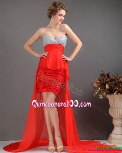 New Style Red High Low Dama Dresses with Ruching and Beading