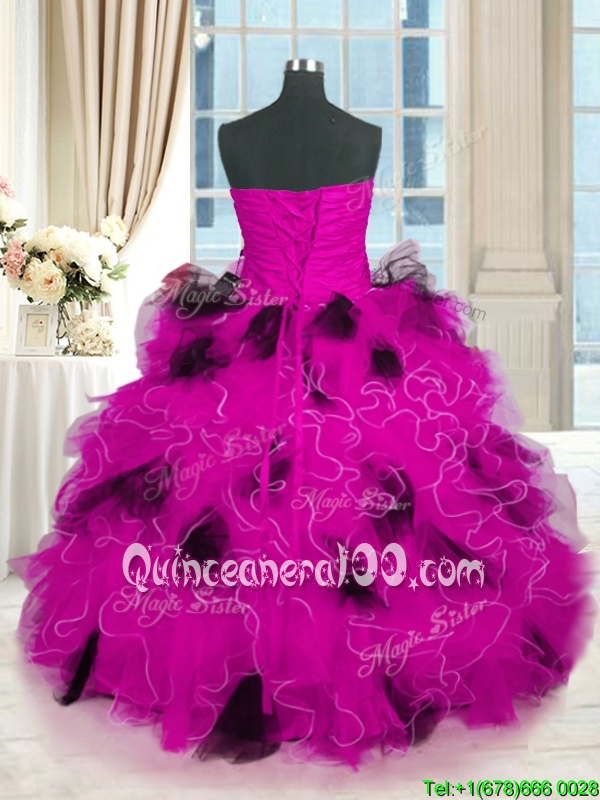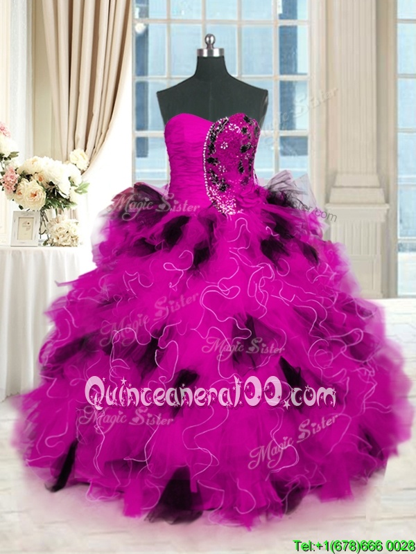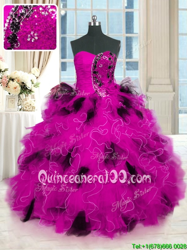 Nice Sleeveless Tulle Floor Length Lace Up Sweet 16 Quinceanera Dress inMulti-color forSpring and Summer and Fall and Winter withBeading and Ruffles