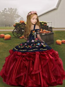 Olive Green Ball Gowns Straps Sleeveless Organza Floor Length Lace Up Embroidery and Ruffles Girls Pageant Dresses