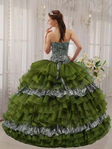 Olive Green Zebra Taffeta and Organza Layers Dress for Quince