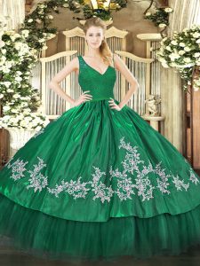 On Sale Dark Green Sleeveless Taffeta Zipper Quinceanera Gowns for Sweet 16 and Quinceanera