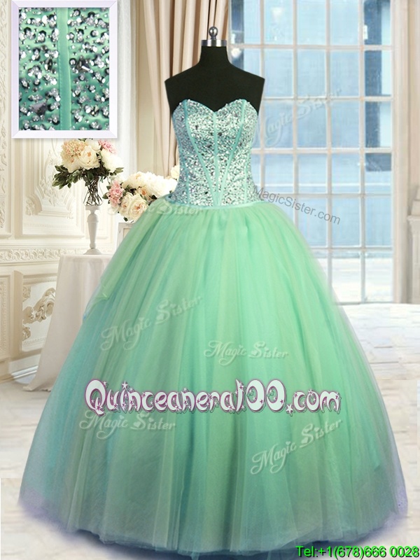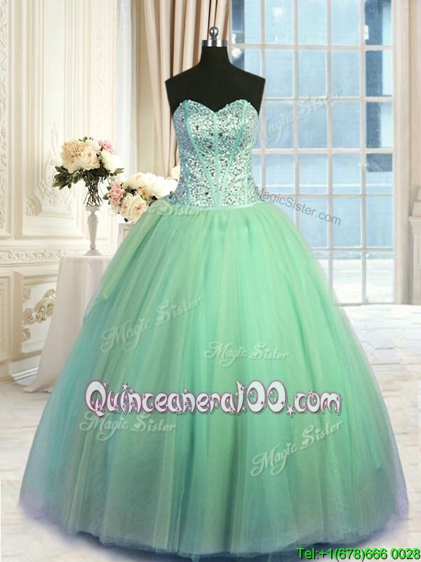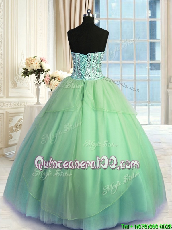 On Sale Floor Length Turquoise 15 Quinceanera Dress Sweetheart Sleeveless Lace Up