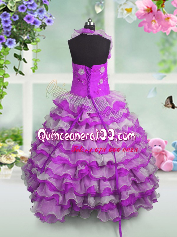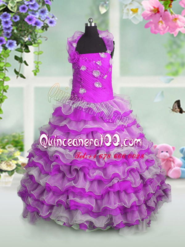 On Sale Ruffled Straps Sleeveless Lace Up Pageant Dresses Fuchsia Organza