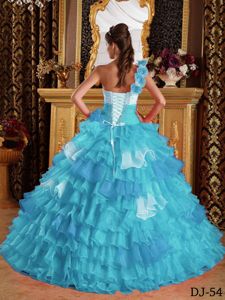 One Shoulder Aqua Blue Ruffles Beading Quinceanera Dress