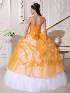 Orange and White Layered Quinceanera Gowns with Appliques