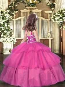 Orange Organza Lace Up Straps Sleeveless Floor Length Little Girls Pageant Gowns Ruffled Layers