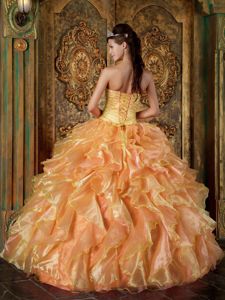 Orange Ruffled Floor-length Beaded Quinceanera Gown Dresses