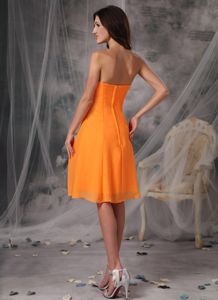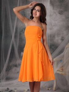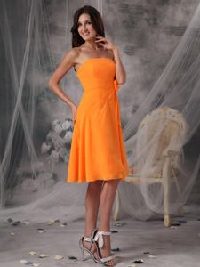 Orange Strapless Knee-length Dama Dress with Handmade FlowersOrange Strapless Knee-length Dama Dress with Handmade Flowers