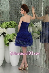 Organza Column Bule Ruffled Layers Bowknot Strapless Dama Dresses