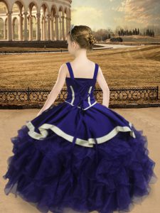 Organza Sleeveless Floor Length Pageant Gowns For Girls and Beading and Ruffles