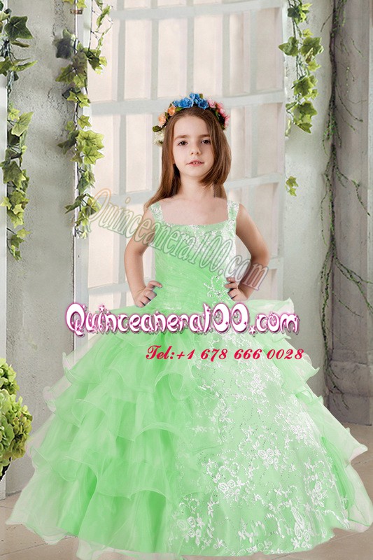 Organza Square Sleeveless Lace Up Lace and Ruffled Layers Little Girl Pageant Gowns in Apple Green