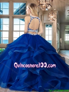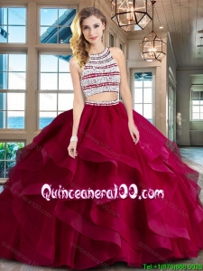 Perfect Ruffled and Beaded Wine Red Quinceanera Dress with Brush Train