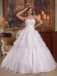 Perfect White Sweetheart Pleats and Embroidery Quinceanera GownPerfect White Sweetheart Pleats and Embroidery Quinceanera Gown