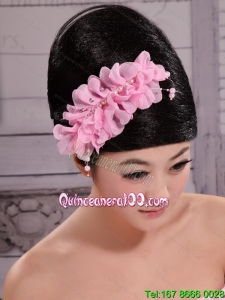Pink Chiffon Bud Silk Pearls Net Flowers For Wedding