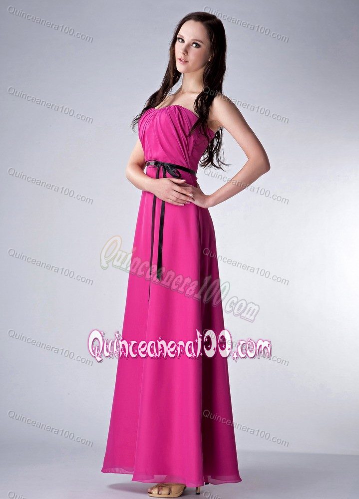 Pink Strapless Empire Ankle-length Chiffon Dama Dress with SashPink Strapless Empire Ankle-length Chiffon Dama Dress with Sash
