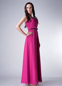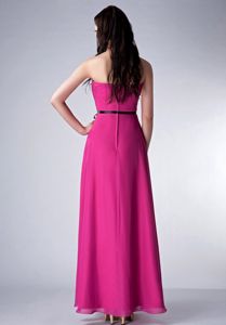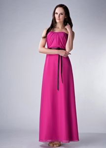 Pink Strapless Empire Ankle-length Chiffon Dama Dress with Sash