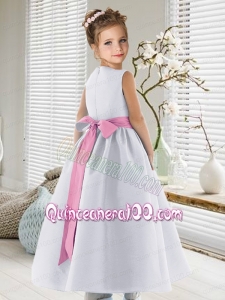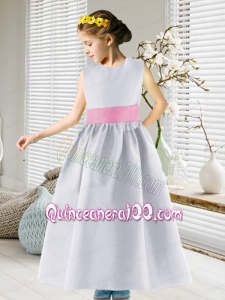 Popular Scoop Ankle-length Satin Flower Girl Dress with Belt