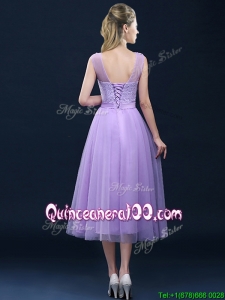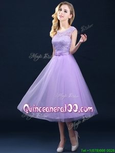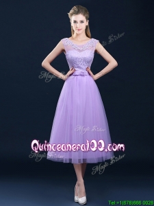 Popular See Through Applique and Belt Dama Dress in Tulle