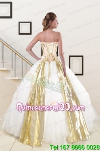 Popular Strapless White 2015 Quinceanera Dresses with Appliques