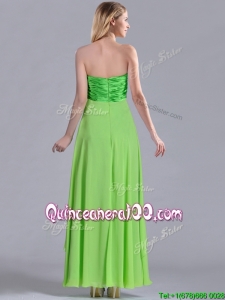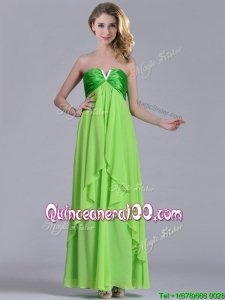 Pretty Beaded Decorated V Neck Spring Green Dama Dress in Ankle Length