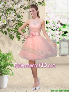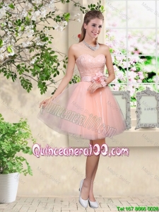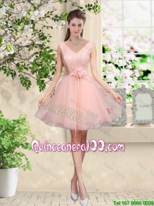 Pretty Discount Off the Shoulder Hand Made Flowers Dama Dresses in Baby Pink