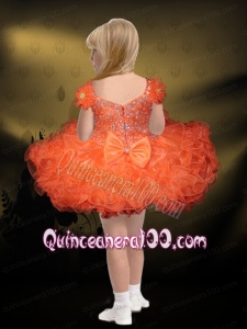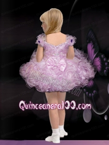 Pretty Lilac Ball Gown Short Beading Little Girl Dress with Bowknot