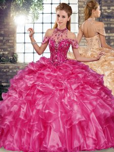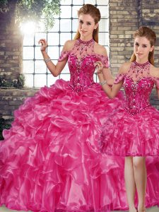 Pretty Sleeveless Beading and Ruffles Lace Up Sweet 16 Dresses