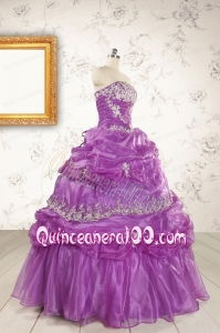 Pretty Strapless Lilac Quinceanera Dresses with Appliques for 2015