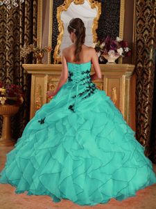 Pretty Turquoise Ruffles Appliques Quinceanera Dresses in FashionPretty Turquoise Ruffles Appliques Quinceanera Dresses in Fashion