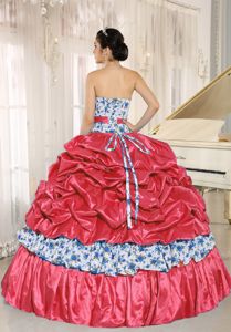 Printing Multi-color Sweet 15 Dresses with Pick Ups and Beading