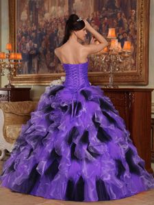 Purple and Black Strapless Quinceanera Dress with Beading and Ruffled Skirt