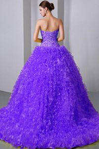 Purple Beaded Brush Train Quinceneara Dresses with Rolling FlowersPurple Beaded Brush Train Quinceneara Dresses with Rolling Flowers