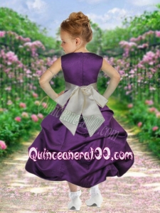 Purple Scoop Ankle-length Bowknot Flower Girl Dress with Pick-ups