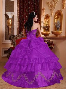Purple Strapless Appliques Pick ups Sweet Sixteen Quinceanera Dress
