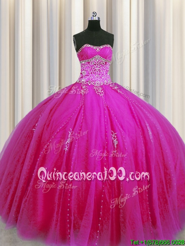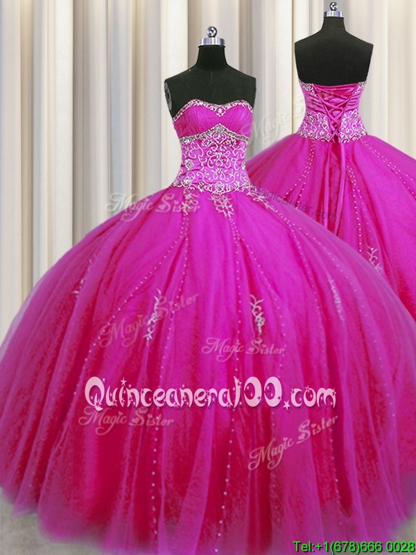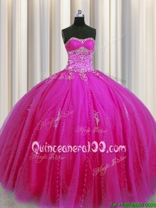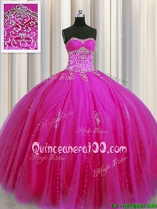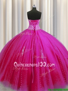 Really Puffy Floor Length Ball Gowns Sleeveless Fuchsia Quinceanera Gowns Lace Up