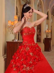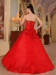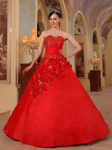 Red A-line Organza Quinceanera Dresses Gowns with Flowers Beading