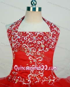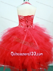 Red and Halter For Little Girl Pageant Dresses With Ruffled LayersRed and Halter For Little Girl Pageant Dresses With Ruffled Layers